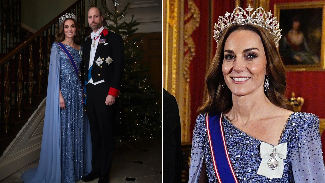 „ჯენი პეკჰამის“ ბრჭყვიალა კაბა და დიადემა ბრილიანტებით – ქეით...